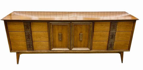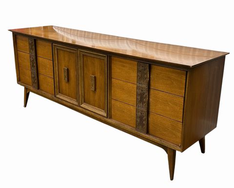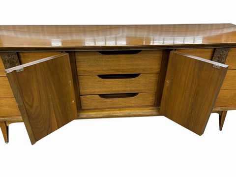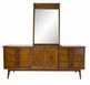 MCM Bassett Mayan Walnut Long Dresser w/Mirror,