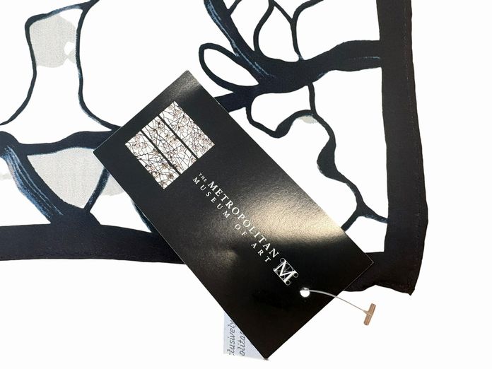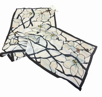 Met. Museum of Art Tiffany White Magnolia oblong silk scarf, 72" l, 18" w