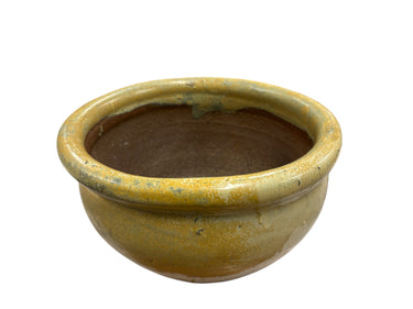 Ochre glazed round stoneware planter, 5.75" h, 9.25" diam.