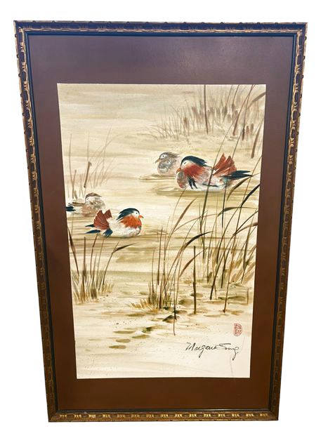 Orginal Mandarin Duck Art Paint on Board, signed, 51"h x 32"w