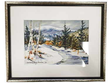 Orig Watercolor Winter Birches, signed C Jackson 12"h x 14.5"w