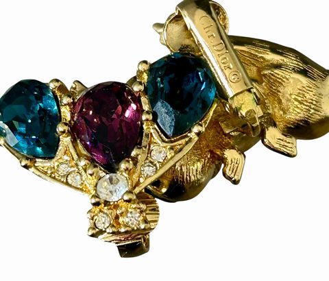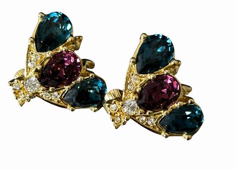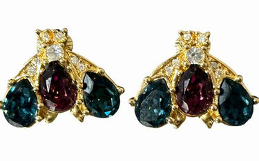 Pair Christian Dior Three Glass Stone Earrings