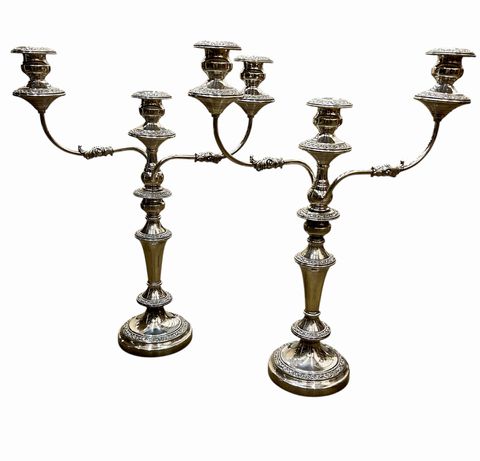 Pair of English Silver Plated Three Light Convertible Candelabra, H. 21.5 in., W. 16.5 in.