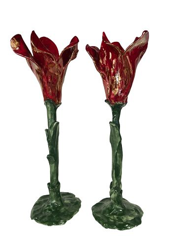 Pair Of Hand Made Signed & Dated Flower Candle Sticks 13x5"