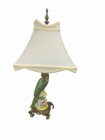 Pair oF Porcelain Parrot Table Lamps w/Gilt & Bronze 26x12"