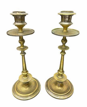 PAIR of vintage brass baluster candlesticks, 9.25" g