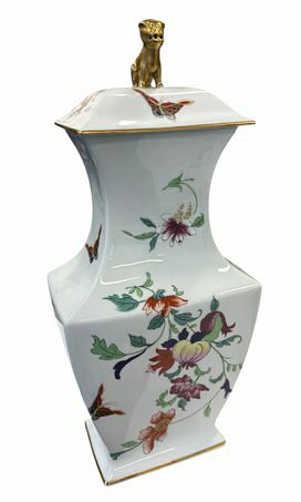 PAIR of Vista Alegre (Portugal) Samatra porcelain vases, 1 w/out lid, 18" h x 8" w x 4.5" d