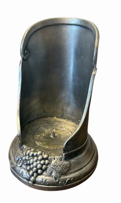 Pewter wine bottle holder embossed w/ grapevine motif &marked 1836, 7.5" h, 5" d