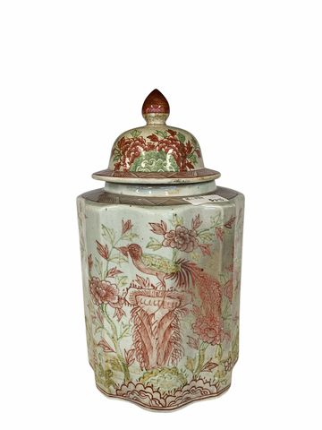 Pink & Green Ribbed Lidded Jar,Bird & Spirit Stone 18x10"