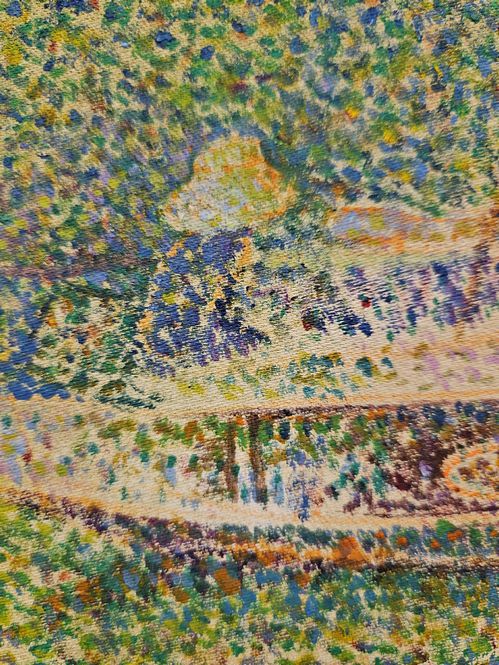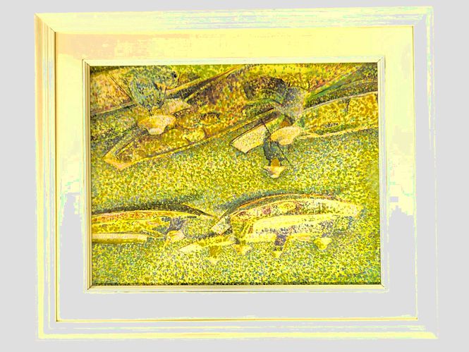 Pointillism Styled Oil on Canvas Asian Fishing Boats 18.5"h x 22.5"w