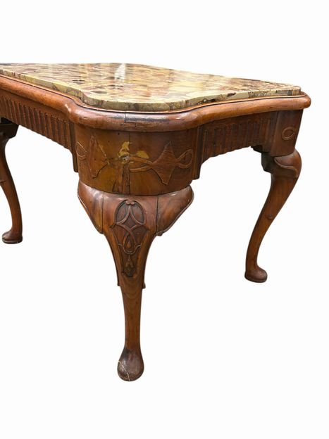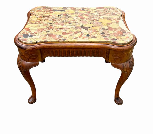 Queen Anne Style Walnut Low Table w/Insert Marble Top