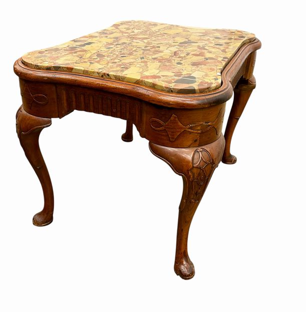 Queen Anne Style Walnut Low Table w/Insert Marble Top, 19 in. x 25.5x20.5 in.
