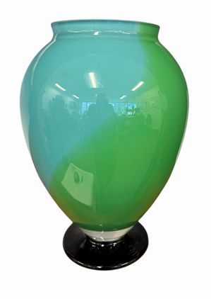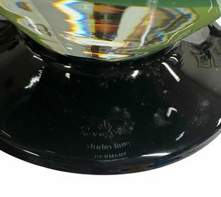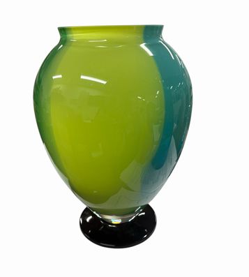 Rosenthal Studio-Line yellow/turquoise/green art glass vase w/ black foot, 11.25