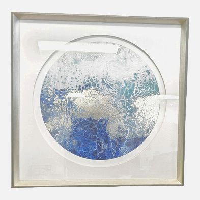 Round Abstract in Aqua, Turquoise, Silver, and White 26"Sq