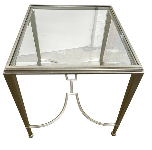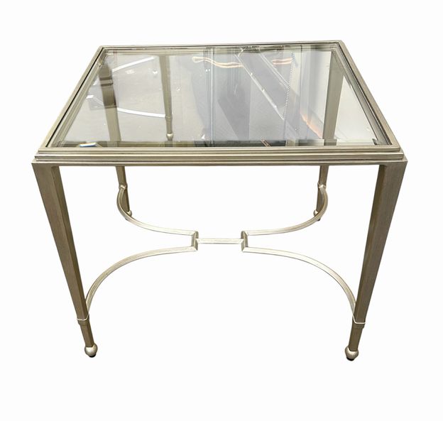 Sangiovese Argento End Table w/Beveled Glass Top, H. 25 in. x 24x28 in.