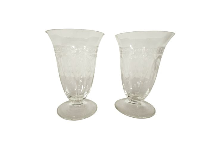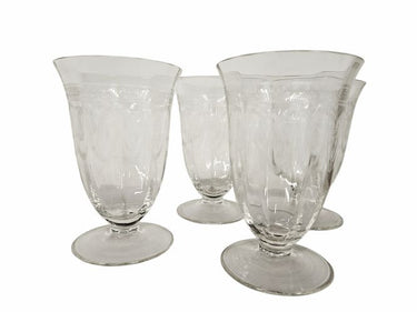 Set : 4 Water and 2 Juice Needle Etched Crystal Glasses 6"h & 4"h