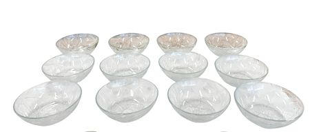 Set of 12 textured floral glass bowls, 2.25" h, 6.5" diam.