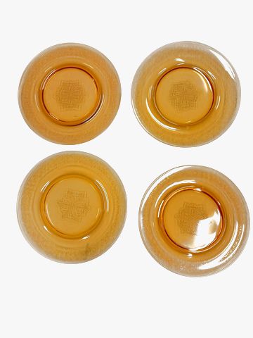 Set of 4 Cambridge "Florentine" amber Depression glass plates (discontinued), 8" diam.