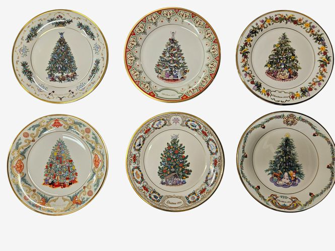 Set of 6 Lenox World Christmas Tree PLates, random dates 9"Dia