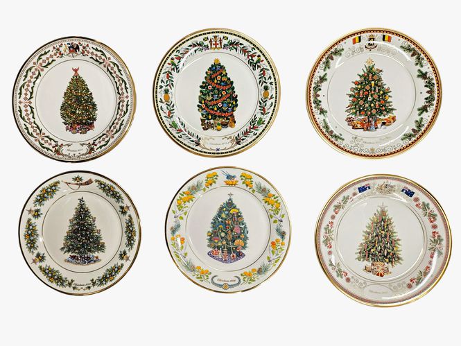 Set of 6 Lenox World Christmas Tree PLates, random dates 9"Dia