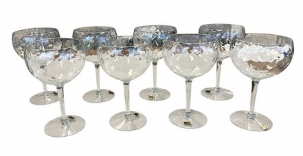 Set of 8 vintage West Virginia Glass Diamond Optic champagne/sherbet, 7.75" h