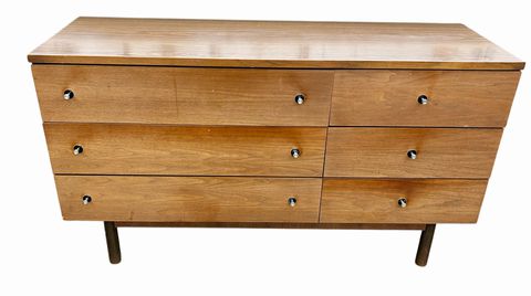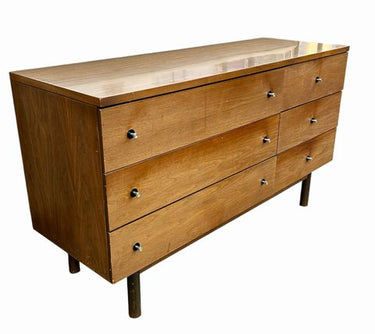 Stanley Mid-Century Walnut Six-Drawer Dresser, H. 30 in. x W. 52 in. x D. 17.5 in. (as is)