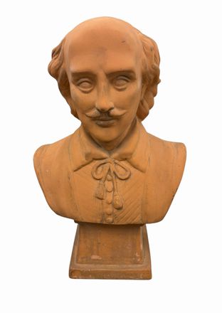 Terra-cotta bust of Shakespeare, 12" h x 7" w x 4.5" d