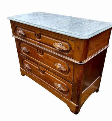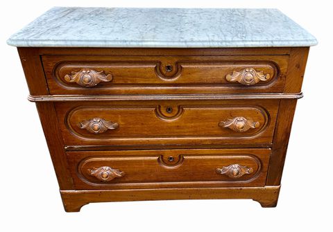 Victorian Walnut & Marble Top Chest of Drawers, H. 33.25 in. x W. 42 in.