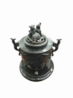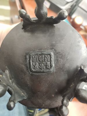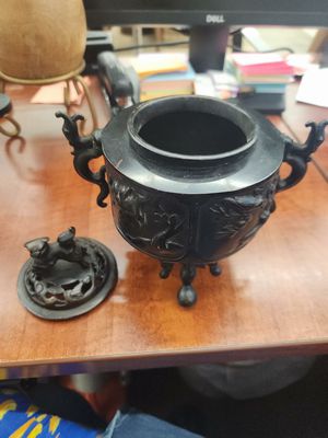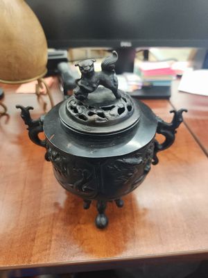 Vintage Chinese Bronze Censer/incense Burner, 7" Round x 7 1/2"H