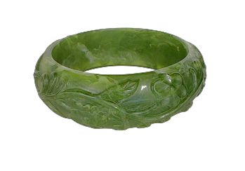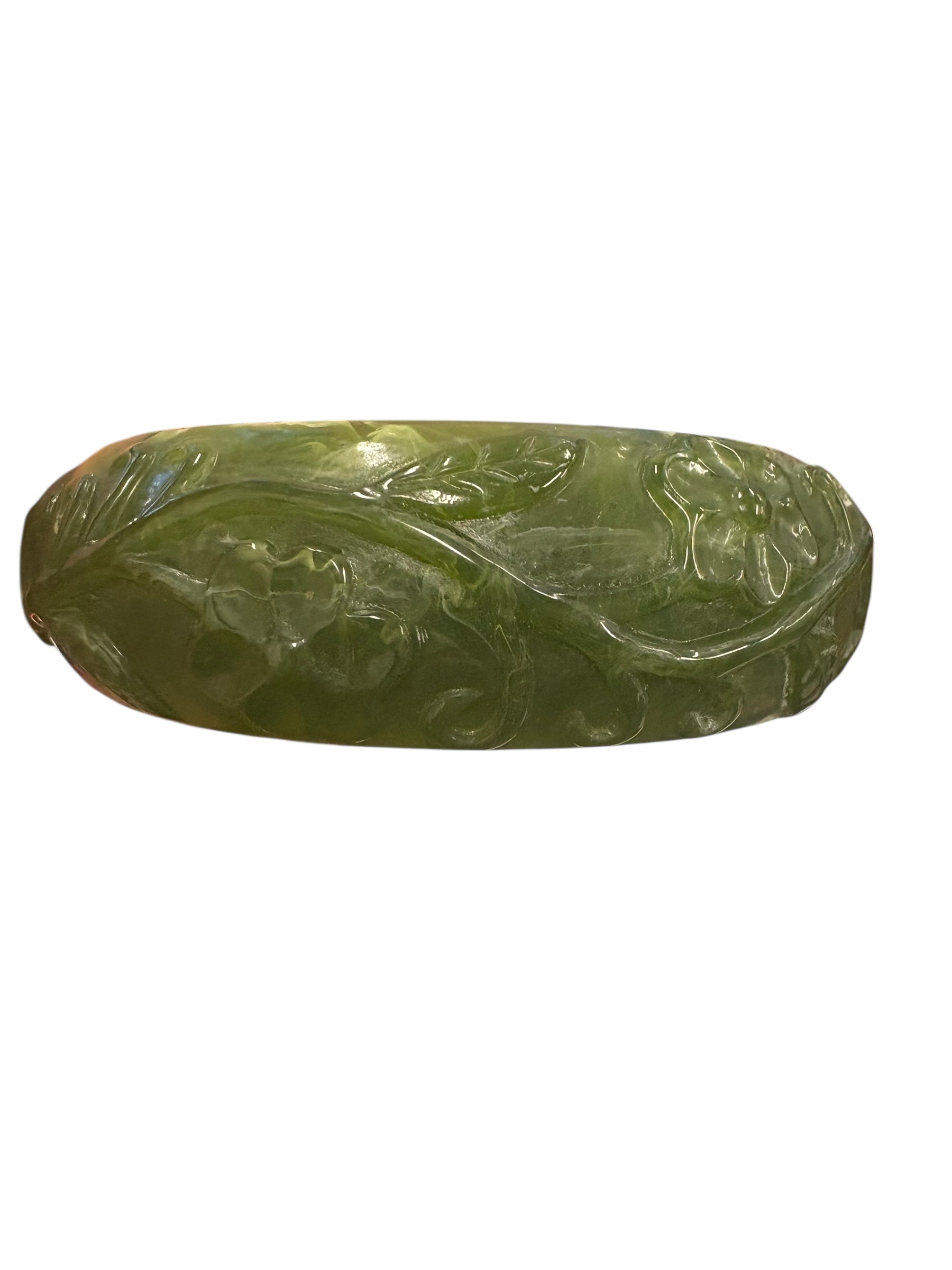 Vintage green carved Bakelite bangle, 2.5" (inner diam.)