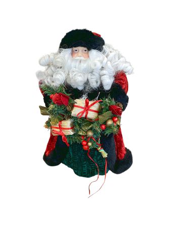 Vintage Handcrafted Santa w/Red & Black Velvet Suit 12X7"
