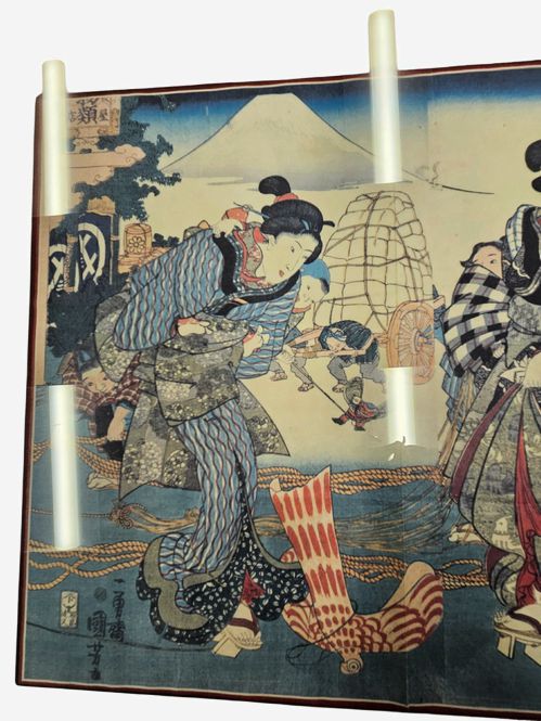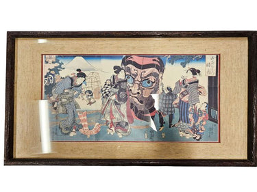 Vintage Japanese Print, Kite Flying 19"h x 35"w