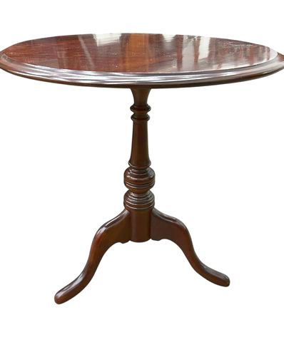 Vintage Queen Anne Style Mahogany Round Top Side Table, H. 25 in. x 24 in. Diam.