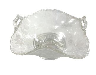 Vintage ruffled-edge embossed candy dish, likely Cambridge, 3.5" h, 6" w
