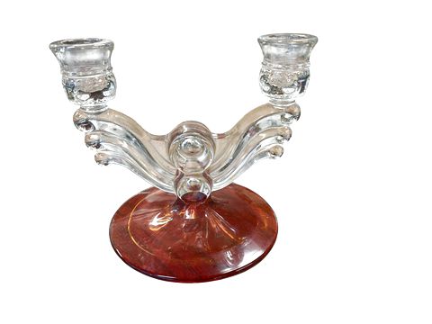 Vintage Tiffin-Franciscan King's Crown Ruby Flashed double candleholder, 6" h, 6