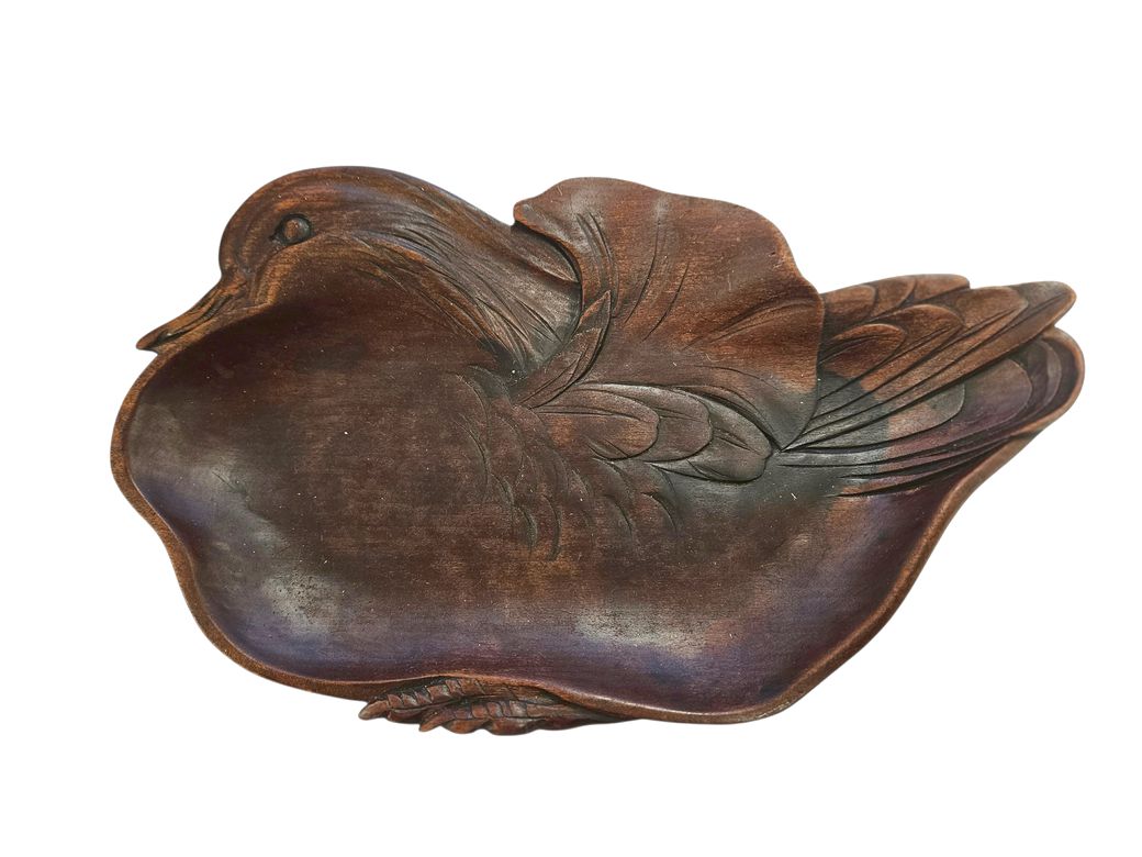 Vintage Wood Carved Mandarin Duck Dish 1"h x 6"s x 10"l