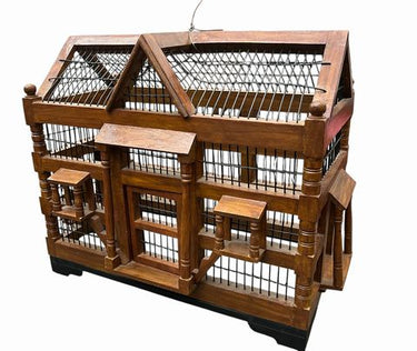 Vintage Wood & Wire Bird Cage, H. 18 in. x W. 20 in. x D. 24 in.
