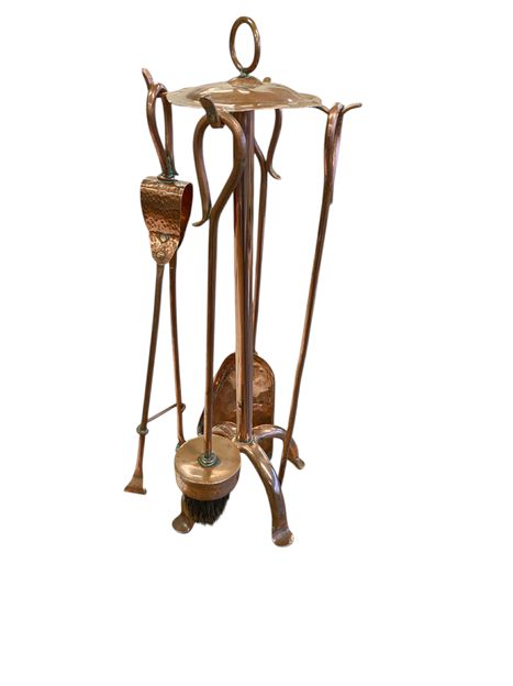 4 Pc and Stand Vintage Copper Fireplace Set 22" h