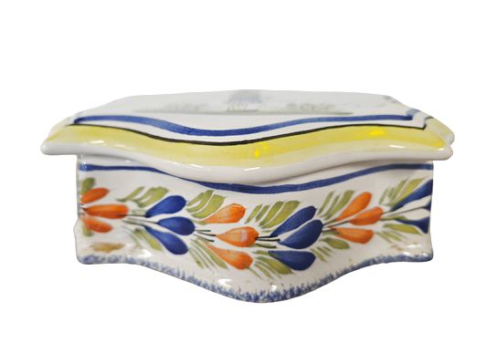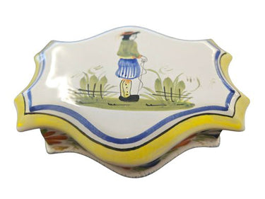 Henriot Quimper Lidded Trinket Dish 2.75"h x 4.5"d x 6"l
