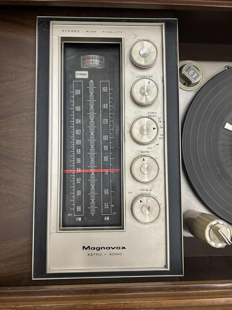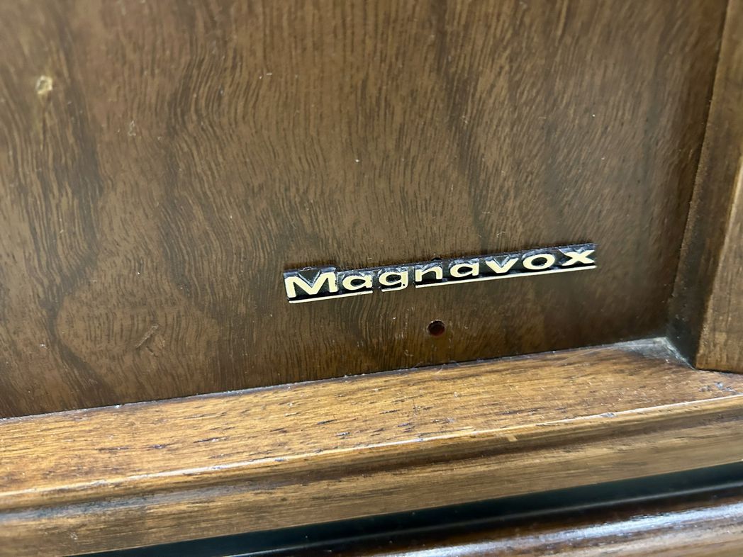 MCM Magnavox Teak Console Stereo w/Generous Record Storage, H. 26 in. x W. 54.5 in. x D. 18 in.