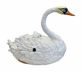 1960s Bassano Italian glazed ceramic tureen w/ ladle, 19" h, 22.5" w, 11" d
