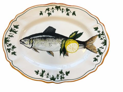 Deruta (Italy) fish w/ lemons handpainted ceramic oval platter, 15" x 11.5"