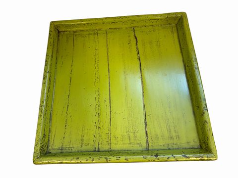 Lime green wooden tray, 1" h, 15.75" w, 15" d