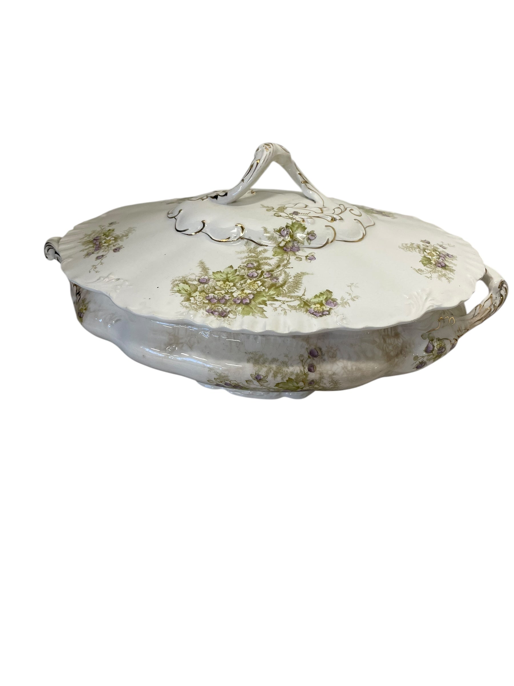 Limoges Oval Tureen w Lavender Floral Pattern 7"h X 9"l