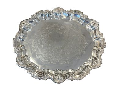 Oblong silverplate footed tray, 14.75" w x 12.5" d