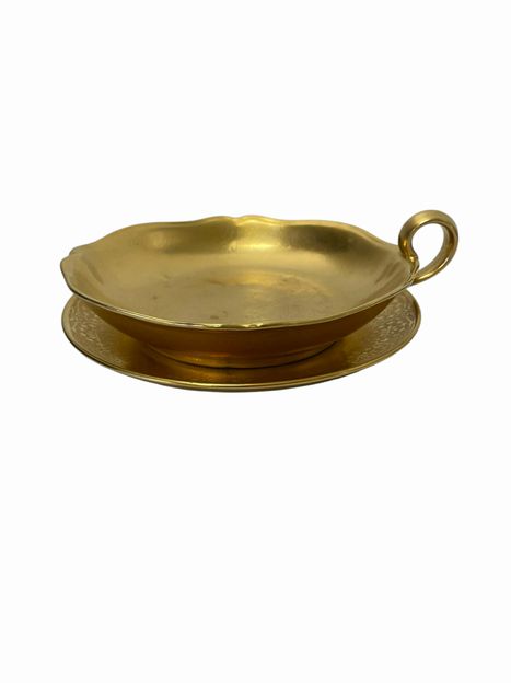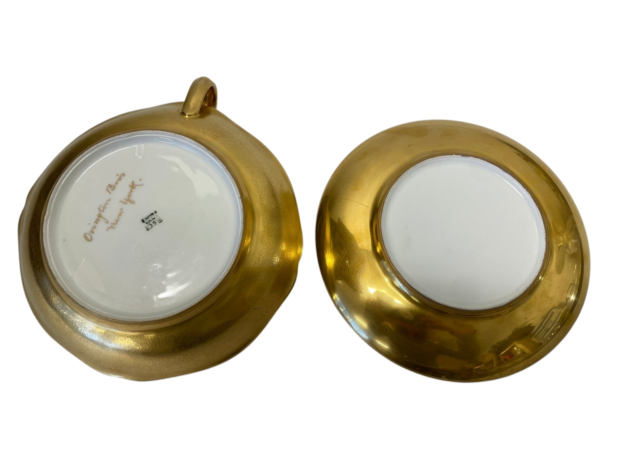 Pair Gold Dish and Server w handle by Ovington Bros.6.5 "dia