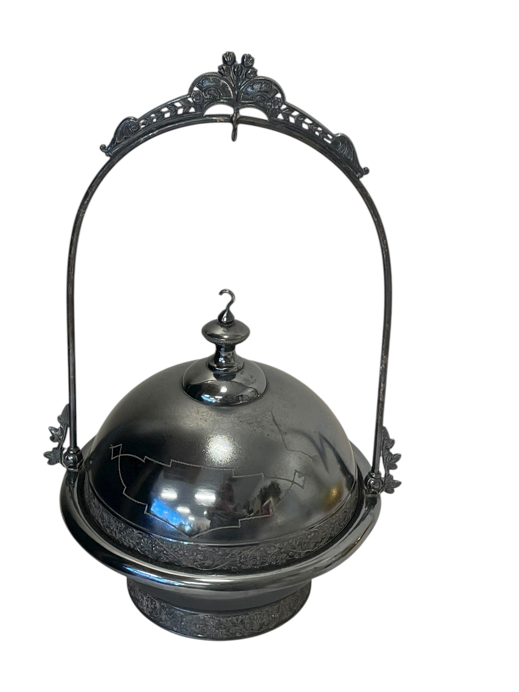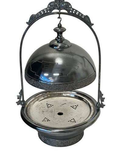 Victorian Rodgers Covered Cheese/Butter Dish w Handle 8"h x 6"dia