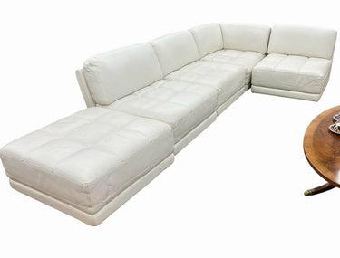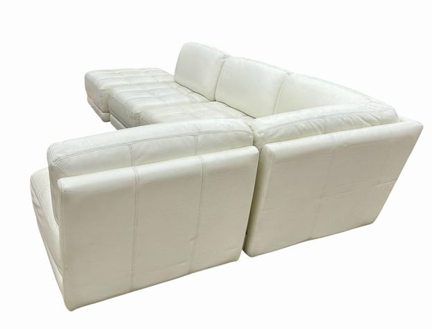 Italian Contemporary White Leather 5 Piece Sectional, 3 sections H. 30 in. x W. 33 in. x D. 36 in., Corner section, H. 30 in. x 38 x 38 in. x D. 52.5 in.