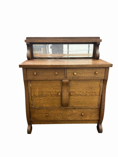 American Late Victorian Oak Server, ca. 1910, H.50.25 in. x W. 42 in. x D. 21 in.