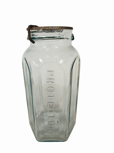 Antique 1867 \Aqua 6-side "Protector" jar w/ wire bail close, 7.25" h
